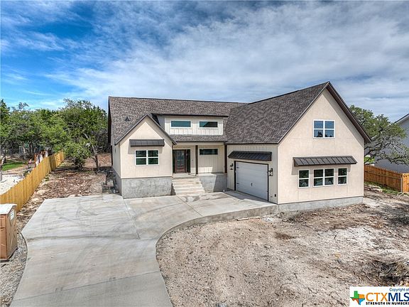 Gorgeous Texas Hill Country home! Newly constructed 4 bedroom, 3 bath; Approximately 3,000 sqft, the open floor plan features custom cabinetry, ample storage, and exceptional details to lighting and other finishes which make this home feel like a custom build. Spacious kitchen with large center island, granite counters, stainless appliances, and custom cabinets with upper and lower ambient lighting. A large pantry with wine chiller, granite counter tops and lots of shelving. The family room has vaulted ceiling with wooden beam, recessed lighting and opens to both kitchen and the offset dining area. The Master Suite has vaulted ceilings with specialty lighting, custom tile walk-in shower, separate jetted tub, double vanities, The wood-look tile floors are throughout the main level. The main level also has 2 secondary bedrooms with tray ceilings with large closets. 4th bedroom or optional game room, private upstairs bathroom, and an additional bonus area for home office or gym. .