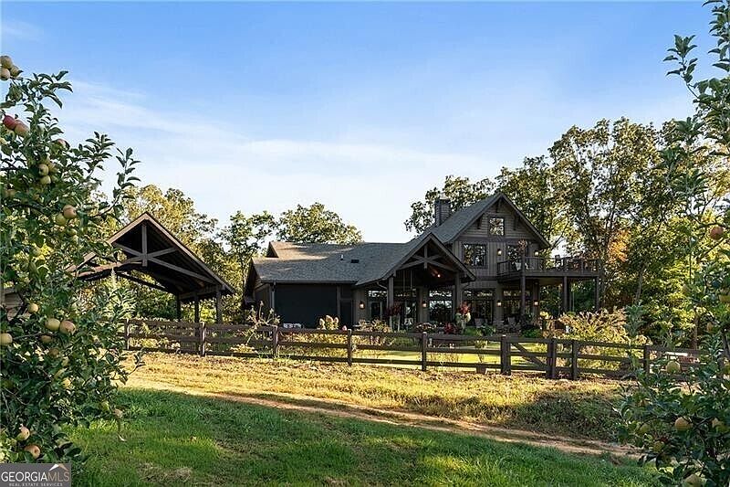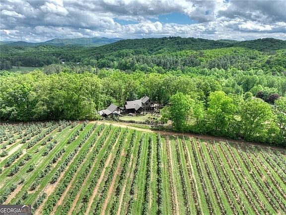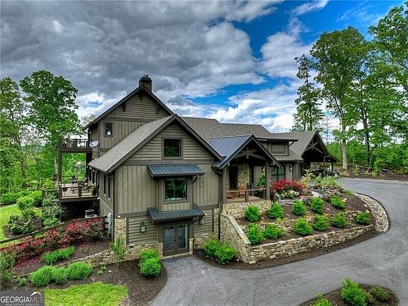 Back on the market with a completely finished designer terrace level complete with a bedroom, sitting area and full bathroom with French doors leading to the outside patio! Overlooking lush mountain views, rolling hills of apple orchards, a serene and inviting estate surrounding with established and vibrant landscaping, this exquisite custom refined mountain home exudes luxurious living! With beautifully appointed and hand-picked finishes and details, open-concept living, harmoniously crafted indoor-outdoor entertaining spaces comprised of sprawling open decks, a screened-in den, and viewing decks off the top floor; a secluded and unreal Tuscan-style setting with views of North Carolina, Tennessee, Cohutta Forest mountain ranges, and rolling apple orchard hills in the backyard. Interior is complete with a gourmet kitchen, custom cabinetry, large chef's pantry, full wet bar, large dining area with sliders opening up to an additional outdoor al fresco dining area, comfortable and luxurious living room with masonry stone fireplace, custom window treatments throughout the home and with views from every room! Each bedroom has its own luxurious ensuite with designer tile showers, large closets, and creature comfort details throughout. Primary suite on the main level has a large soaking tub creating the perfect spa-like feel. The terrace level is complete with a fourth bedroom suite, bountiful storage and glass French doors with a separate entrance! Located one mile to Downtown Blue Ridge, gated entrance with a 1/4 mile long fully-fenced driveway, estate-sized lot with room to grow, stunning double-car lodge pole carport and attached storage area, detached garden shed, 1/2 mile of manicured walking trails throughout the wooded portions of the grounds, fully fenced-in backyard for the furry friends, buried irrigation for the grounds, two wells on the property, two electric meters, low maintenance exterior, and with a full details list available! Call today to tour!