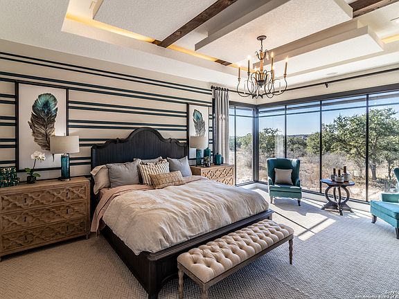 This home is Currently a model home for Vintage Luxury Builders. Discover refined Hill Country living at 1241 Via Principale in sought-after Vintage Oaks. This single-story custom home blends timeless craftsmanship with modern comfort across 4,549 sq. ft. on 1.77 acres of mature oaks. An open floor plan with 14-ft ceilings and engineered hardwood floors sets the tone for luxury living. The gourmet kitchen impresses with Thermador appliances, dual islands, and an oversized walk-in pantry. The spacious primary suite offers his-and-hers closets, while a built-in casita provides flexibility for guests or multigenerational living. Entertain outdoors with a full kitchen, fireplace, and sparkling pool-all perfectly positioned for privacy and tranquility. Energy efficiency shines through closed-cell spray foam insulation and whole-home iDevices smart control. Ideally located across from the community amenity center, this residence captures the very best of Vintage Oaks elegance.