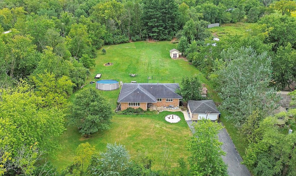 Unwind in Your Serene Country Retreat! Welcome to your dream home nestled in tranquil unincorporated Crete, where peaceful countryside living meets modern comfort. This well built 4-bedroom, 2-bath SOLID BRICK ranch sits majestically on nearly 2 acres of land, complete with an ABOVE GROUND POOL with a brand NEW liner, new 12x14 shed AND chicken coop; offering you a slice of paradise to call your own. With a FULL, unfinished walk out basement, this home offers limitless possibilities. Create a game room, home theater or gym -- the choice is yours. As you step inside, gleaming hardwood floors welcome you into an inviting living space. Your culinary dreams will come to life in the updated kitchen, boasting granite countertops and stainless appliances. Whether you're preparing a gourmet meal or hosting a casual get-together, this spacious kitchen is a chef's delight. Worried about power outages? Fear not, because this home is equipped with a whole-house generator, as well as rolling security shutters for an extra layer of security & privacy. Additionally, the recently replaced AC (2020) guarantees you'll stay cool and comfortable. When you're not lounging by the pool, the spacious yard offers endless opportunities for gardening & outdoor fun, with apple & pear trees & more. Unfinished basement offers a new sump, updated electrical with canned lights & a newer water softener (2-3 yrs old). Convenient fenced in dog run for pets! Detached 2 car garage PLUS shed for your vehicles & toys. John Deere riding lawn mower as well as chickens can stay with the property if desired! Enjoy the peace and tranquility of rural living while remaining conveniently close to all amenities.
