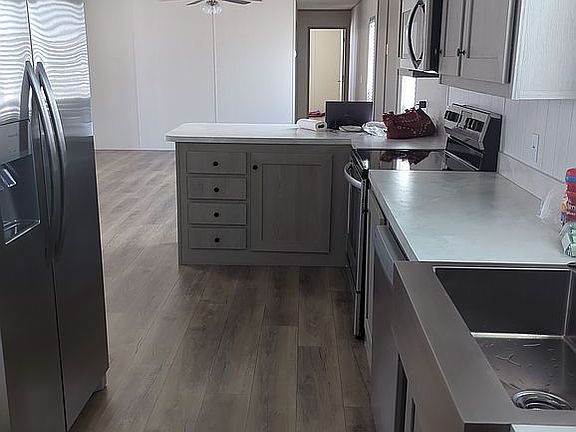 Manufactured Home 2023 for sale 16 x 76 f,3 Beds 2 bath with bathtub. This home currently sits in a Mobile Manufactured Home community in Oak Ranch Community Del Valle Texas. Slab parking for 2 cars next to the home.