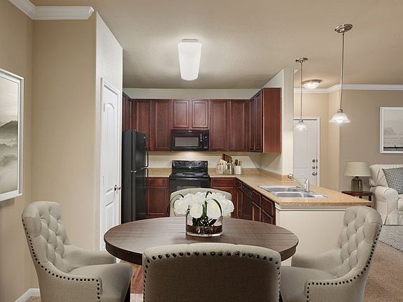 DimensionsSquare Feet -752Living Room - 12'3" x 12'1"Dining Room - 9'3" x 9'1"Bedroom - 11'6" x 12'1"DescriptionThis apartment features a laundry room with a full-size washer and dryer, a spacious kitchen with wood-style flooring, pendant lighting over the breakfast bar, black-on-black appliances, a pantry, an oversized Roman tub, a spacious walk-in closet, a patio or balcony with a storage closet, an intrusion alarm, crown molding, and 9-foot ceilings.