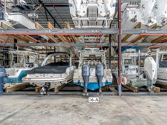 The Boat House is a first class marina and the place you want to keep your boat in the Middle Keys! Rack 16A is in the smaller barn and will accommodate up to a 32.5' LOA, 9.62' max beam and 11.25' max height. See stats in photo list. Please confirm personally that your boat will fit with the dockmaster and schedule a dry fitting if necessary. Scheduled in/out service is included, there is fuel on site, a fish cleaning tiki, boat ramp and a pool. Quick boating access to the ocean and gulf side via Vaca Cut Bridge.