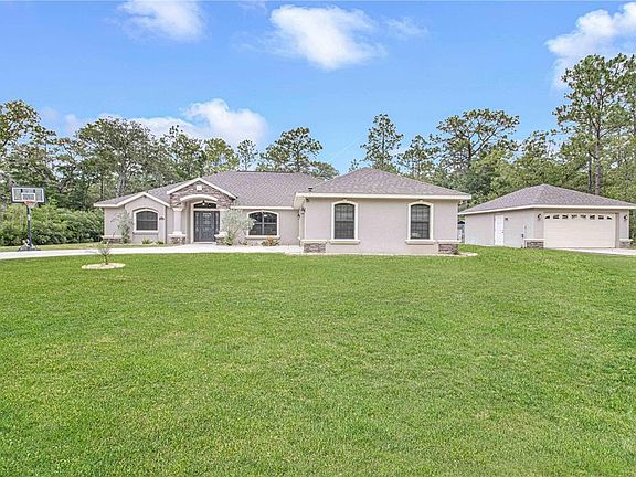 THIS HOME HAS IT ALL!! The moment you see this spacious 4 bedroom, 3 bath home you will appreciate the attention to detail from the private and peaceful setting to the neutral color palette. You'll love entertaining this summer under the spacious covered lanai while cooling off in the screen enclosed saltwater pool that is heated for the cooler evenings! The top quality kitchen features granite counter-tops, Venetian fixtures, stainless steel appliances (including a wine cooler), pot filler, soft close cabinets, wine rack, large pantry. Home is a split plan with the spacious master bedroom to include an attached den/sitting room, master bath includes Roman shower & double vanity, two bedrooms share a Jack and Jill bath, tile floors throughout, inside laundry with cabinets & storage closet. So many extras with this beautiful home....2 car attached garage and a 2 car detached garage, RV hookup, generator hookup, irrigation, yard is fully fenced with gate to driveway and a gate to the detached garage. These features make for the perfect home to fit your lifestyle!