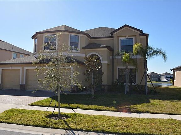 Amazing, 4 year old, Trinity Preserve, Estate home on a lake! This magnificent 5 bedroom 3 full bath, 3 car garage home has it all. From the first step in, you'll notice the 2 story foyer, crown molding in the living room and dining room, huge gourmet kitchen with 42" mocha cabinets, granite counters and island. The kitchen includes a large breakfast nook overlooking the lake and a built-in desk. In addition, downstairs is a bedroom and full bath next to the Great Room. Upstairs is the massive Master Suite with dual closets, walk in shower, garden tub and dual granite top vanity. Also upstairs are 3 additional bedrooms, another full bath, large laundry room and a study/den. Right outside the Trinity Preserve gate is a Publix Shopping Center with many popular restaurants, dry cleaner, liquor store and many more convenient shops. Located near Hwy 54, Trinity Preserve is only 30 minutes from Tampa Int'l Airport and 15 minutes from the beaches!
