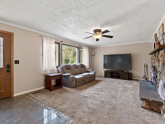 Back on Market and sellers have made repairs and called the listing agent for an explanation of the failed sale. Rancher home on 4.5 acres of secluded land. This home offers complete main floor living with the added convenience of an upstairs laundry room. The 6 bedrooms are generously proportioned, with the primary bedroom featuring a 3/4 bath. The residence is also equipped with two fireplaces—one on the main floor and another in the basement—both boasting new liners and recently swept. All upstairs windows have been replaced with modern vinyl ones. New hot water heater, recent electrical outlets added and electrical system updates done by licensed electricians.