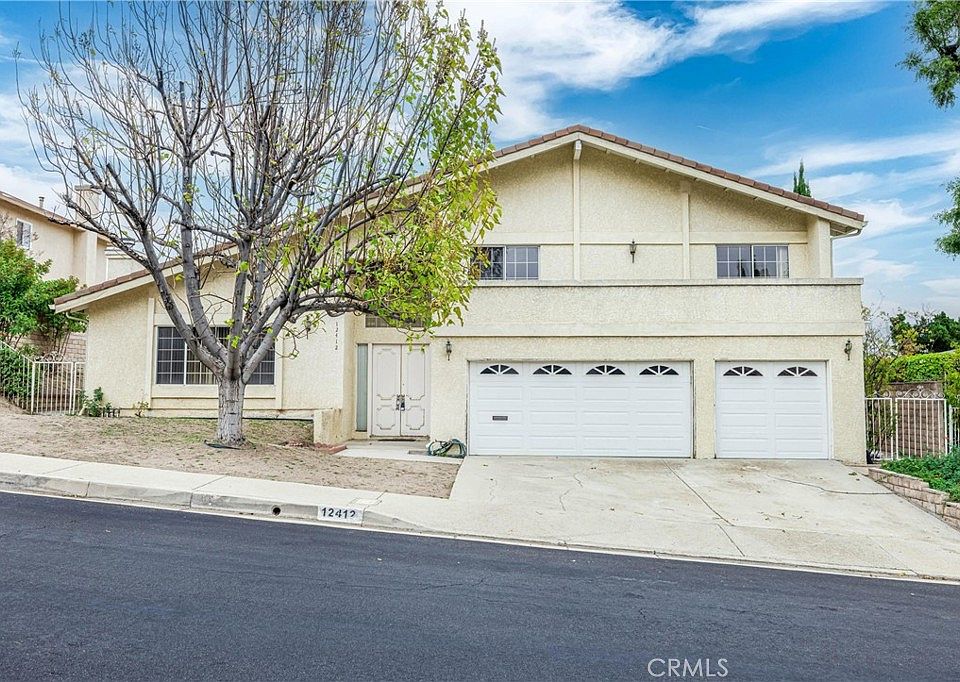 Traditional, tri-level, 4 bed, 3 bath 2718 sq ft house in quiet, residential neighborhood in Granada Hills! Desirable Buckingham tract. This home is ready for its makeover and an excellent opportunity to make it your own! Only one owner! Impressive double front doors open to tiled, 2-story, formal entryway. The family room offers a fireplace and sliding glass doors leading out to the back yard. Formal living and dining areas boasts soaring, vaulted ceilings, large windows, fireplace, a wet bar, and built-in storage. Eat-in kitchen overlooks ground level, a convenient peninsula breakfast bar and room for a breakfast room. Down the hall is a good-sized first floor bedroom with access to a ¾ bath, a dedicated laundry room, and direct access to the 3-car garage. Upstairs are 3 additional bedrooms. The spacious master suite has an en-suite, full bath. The two additional bedrooms each have access to the front balcony and share a full hall bath. Great location, north of Rinaldi, in a family friendly neighborhood with great schools, including award-winning Frost Middle School just down the road. Well situated within easy distance of shopping, dining, entertainment, recreation, including Bee Canyon and O’Melveny Parks, and both the 118 and 5 freeways. Take advantage of this opportunity to call this one home!