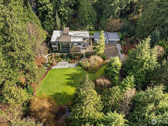 A rare blend of modern elegance & natural beauty, this architectural masterpiece offers the ultimate private retreat just minutes from urban amenities. The great room boasts a 2-way fireplace shared with the dining room & a dramatic 2-story window wall that floods the space with natural light & reveals its gorgeous setting. Spacious, easy flowing kitchen with large island & a double slider to the entertainment patio. Escape to the media room with projector & viewing wall with specialized screen paint. Luxurious primary suite with 5-piece bath & 2 BR suites just down the hall. 2nd floor bonus & loft. Main floor BR/den with ¾ bath nearby & an office/play room. Exercise room off garage. Spectacular grounds. More than a home, it's a sanctuary.