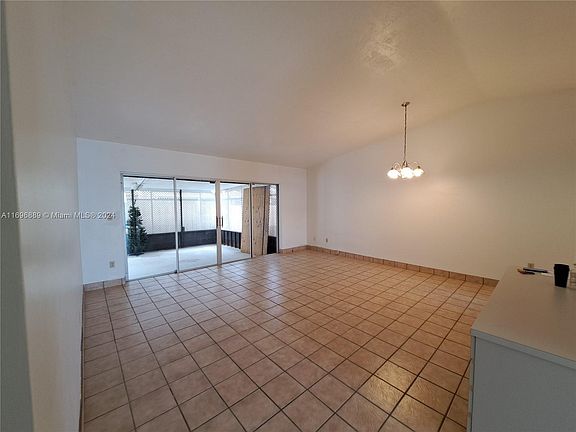 Ready to move in. Owner relocating. Spacious vault ceiling layout with big living / dining Room. Each bedroom has its own private patio. Total living area is 1,101 sq. ft. Big covered patio for entertainment. Two storage rooms. Very low HOA fees. Excellent location. Only minutes away from Turnpike and highway 874 to 826. Close to Miami-Dade College campus and major shopping centers. Must see. Open house Saturday Nov. 23 from 11:00am to 3:00pm.
