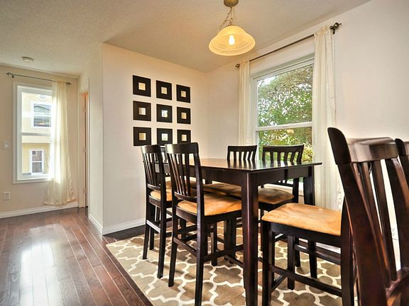 Immaculate well kept townhouse feels like new! Superior finishes include spindle staircase, rounded corners, white two panel doors & millwork. Beautiful new modern hardwoods recently installed in the living spaces. You'll fall in love with the non-traditional layout on the main floor. Three bedrooms on the upper floor complete this exceptional property. Don't miss the HUGE storage room off the garage. Don't let this one pass you by!