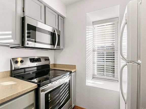 Totally move in ready! TWO private balconies make outdoor living simple and convenient. No shared walls! This well-maintained Cedar Cove unit is light and bright with all new windows throughout. The vaulted ceilings and skylight make the living space feel even more spacious. The living space features a functional wood-burning fireplace, new vinyl plank hardwood flooring, eat-in dining space, and fresh paint throughout. The open-concept kitchen has new stainless steel appliances, ample storage & counter space, and tons of natural light. The master bedroom has a large closet, fresh paint, and custom blackout accordion shades. The 2nd bedroom is non-conforming with loft space and private balcony - perfect for a home office or guest room. Washer/Dryer included! New central A/C! Ample storage with bonus storage closet just outside of unit! The well-managed HOA has a strong financial backing; Renters can enjoy outdoor pool access during the summer months! Blocks from the local grocery store, neighboring restaurants, and the Aurora Hills Golf Course. Easy access to i225 and i70 make this location central and convenient. Schedule your showing today! Owner pays for water. Renter is responsible for gas and electric. Last month rent due at lease signing. Thorough credit check. Absolutely no smoking in home. 2 parking passes for parking included. Fees apply for any lost passes, keys or assessments from violations with HOA