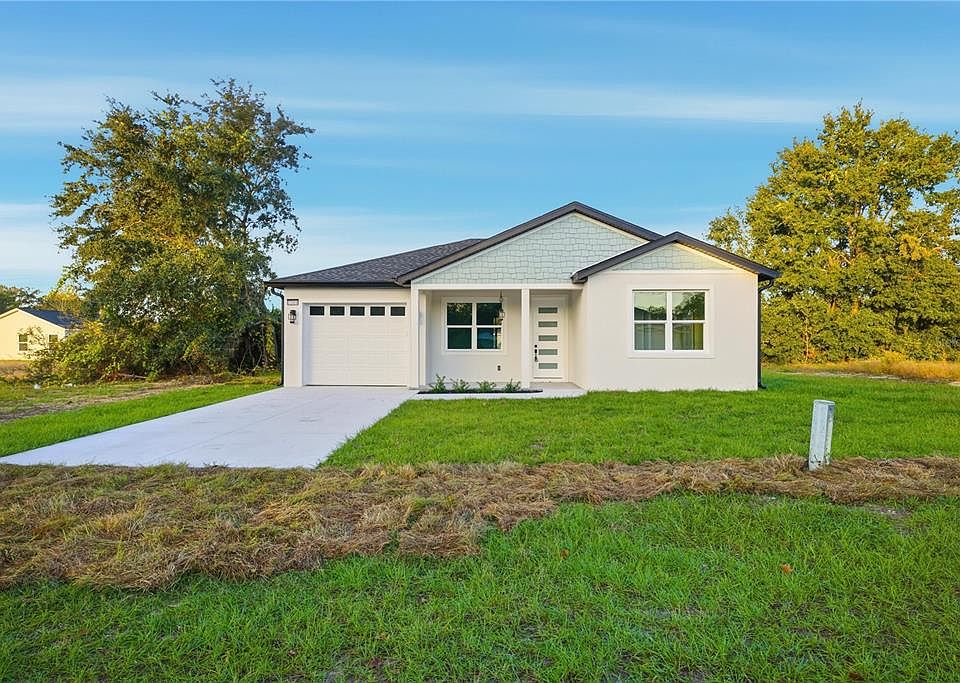 Brand New Construction in Belleview with over 1,200+ Sqft of living space! The Villages and Ocala! Welcome to this beautifully crafted 3-bedroom, 2-bathroom home offering a modern design and quality finishes throughout. This modern home features an open layout with durable tile flooring throughout and a stylish kitchen showcasing quartz countertops, stainless steel appliances, sleek cabinetry, and a stylish backsplash. Enjoy a screened lanai perfect for relaxing, plus clean curb appeal with a covered front porch and a spacious driveway leading to a single-car garage. Conveniently located near The Villages, Ocklawaha, and Ocala, this move in ready home blends comfort, style, and accessibility. Call today for more information.