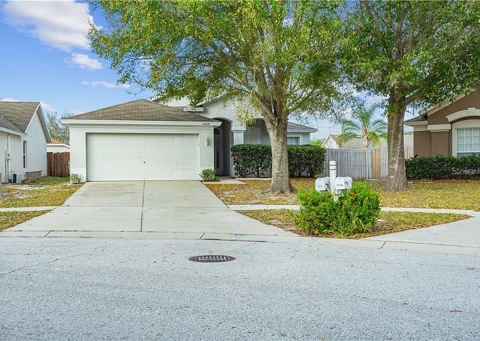 Come see this stunning 4 bedroom, 2 bath home that shows beautifully and is waiting for a new owner. This amazing property offers fantastic curb appeal and a large over-sized fenced in yard which is located on a quiet cul-de-sac street. Relax or/and entertain in the large screened in Lanai. The master suite is very spacious with a luxurious master bathroom featuring dual sinks, a garden tub and a shower. The spacious eat in kitchen features plenty of cabinet space. South Pointe amenities include two pools, basketball court, playground and clubhouse plus very low HOA fees and No CDDs! This community is conveniently located off US-301 and the Crosstown Expressway, providing easy access to downtown Tampa, Macdill AFB and beautiful beaches in Sarasota/Bradenton, FLorida.