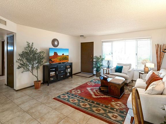 Large lot provides privacy and views of the beautiful desert landscape. Backyard has a covered patio with patio table, chairs, gas grill and lounge chairs. There's also a small fenced yard and doggie door for your approved small dog(s).
