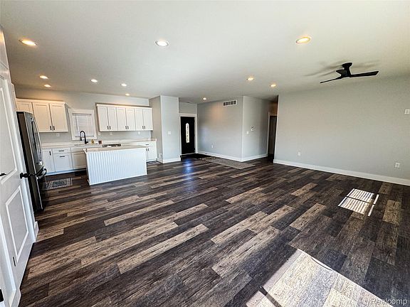 New construction modern farmhouse on one acre in Gaines Township! This barndominium-inspired home features 3 main-floor bedrooms plus a large bonus room or 4th bedroom over the garage. Built with efficiency in mind, it includes spray foam insulation, a high-efficiency furnace, and a well and septic system for affordable living. The exterior highlights a clean white-and-black color scheme with a custom black garage door and spacious front and rear concrete patios. Inside, enjoy luxury vinyl plank flooring throughout, a custom kitchen with soft-close cabinets, and beautiful quartz countertops. Quality-built with great attention to detail — modern, efficient, and move-in ready! Call today for more info or a private showing.