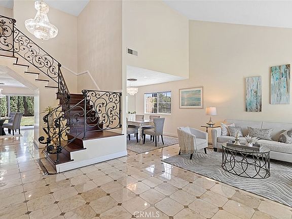 Welcome to this stunning home located in a highly desirable and prestigious Granada Park neighborhood of Cerritos! Fully upgraded, immaculate home move-in ready condition. As you enter this spectacular home through custom double doors, you'll immediately be impressed by the majestic cathedral ceilings and an airy open floor plan that make this home truly remarkable. The spacious living room seamlessly flows into the formal dining room with an abundance of natural light. Adjoined to the living room is the formal spacious dining area with chandelier & recessed lighting.