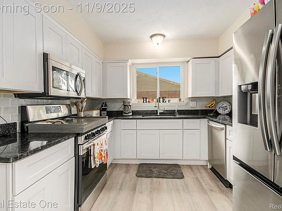 Welcome home! This charming Sterling Heights ranch is perfect for first-time buyers or anyone looking to downsize. You’ll love the cozy living room with real hardwood floors and a brick fireplace, plus three bedrooms with hardwood floors and ceiling fans. The kitchen features granite countertops, a tile backsplash, and stainless steel appliances, with the washer and dryer included.