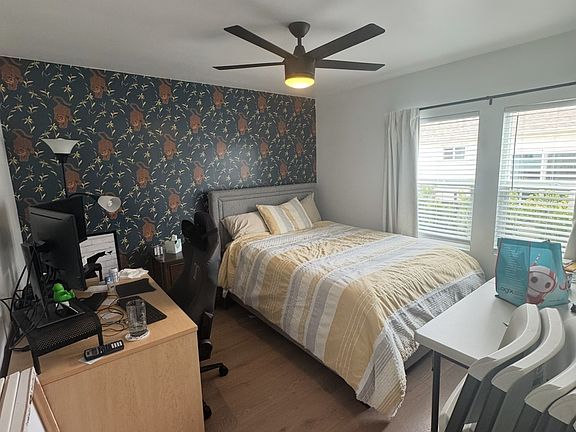 Shared fully stocked kitchen and living room area complete with new couch and 70-inch TV. Laundry machines in-house. Spacious Front and backyard with furnished backyard deck.