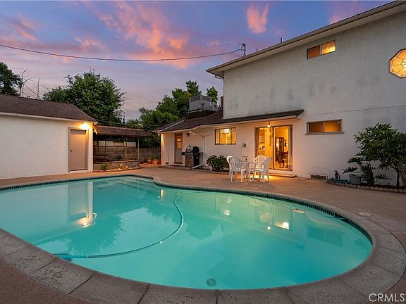 Welcome to this delightful mid-century residence, original family owned, proudly offered for the first time on the market. Located in a desirable North Hollywood neighborhood and surrounded by a welcoming community experiencing ongoing revitalization, this entertainer’s dream blends timeless character with thoughtful modern upgrades. Boasting three spacious bedrooms, three bathrooms, a den, and a sparkling swimming pool, this home is designed for comfort, function, and indoor-outdoor living. A inviting front porch sets the tone as you enter through the entry foyer into the home. The sun-drenched living room features expansive windows that fill the space with natural light—ideal for relaxing evenings or after-dinner conversation. The adjacent den, complete with a handsome wood-burning fireplace, offers the perfect cozy space to unwind with a book or enjoy movie night. At the heart of the home is a spacious cook’s kitchen featuring tile countertops, ample cabinetry, and a sunny breakfast nook. Equipped with an electric double oven/range, dishwasher, microwave, and refrigerator, this kitchen is ready for everyday meals or entertaining. A separate dining room offers the perfect setting for intimate family dinners or festive gatherings. Nearby, a laundry room provides abundant storage and backyard access for added convenience. Upstairs, the spacious primary suite is a serene retreat, complete with a walk-in closet, secondary mirrored closet, and en suite bathroom featuring a dual-sink vanity, soaking tub, tiled shower, and built-in storage. Downstairs, a secondary primary bedroom also offers an en suite bathroom and walk-in closet—perfect for guests or multi-generational living. The third bedroom is generously sized with ample closet space and easy access to a large hall bathroom with a shower-over-tub combo. A home office nook offers a great space for remote work, study, or a home gym setup. Step outside to your private backyard retreat, featuring a sparkling pool, covered patio, and lush landscaping. The north-facing backyard enjoys morning sun and afternoon shade—ideal for al fresco dining, lounging by the pool, or weekend entertaining. Conveniently located near great shopping, schools, dining, entertainment, and major freeways and transit, this North Hollywood treasure is ready for its next chapter. Whether you're hosting family gatherings, relaxing poolside, or enjoying the community vibe, this home offers the perfect blend of comfort, charm, and location.