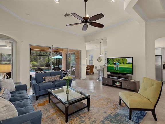 Skip the Waiting List—Golf Membership Available! Turnkey Pool Home with Golf Cart Included! Live the Southwest Florida lifestyle in this beautifully maintained Portsmouth floor plan offering over 1,900 sq ft of comfort and style. Featuring two bedrooms plus a large den (optional third bedroom), two bathrooms, and a two-car garage with epoxy flooring, this home is being sold turnkey furnished—including the golf cart. The spacious great room welcomes you with soaring 12-foot ceilings, diagonal tile flooring, and sliding glass doors that open to an oversized lanai with solar lighting, a heated pool, and tranquil Eastern preserve views. The kitchen is designed for both function and style, featuring new countertops, stainless steel appliances, under-cabinet lighting, a breakfast bar, and a pantry with pull-out shelves. The primary suite offers a walk-in closet, dual sinks, and a glass-enclosed shower. Additional upgrades include a new AC (2025), freshly painted interior, new pool cover, extensive crown molding, a laundry room sink, and a security system. Hurricane protection includes an electric roll-down Kevlar screen on the lanai and roll-down shutters on the side. This home is also not in a flood zone. The seller holds a Plantation Golf & Country Club membership, giving buyers the rare opportunity to skip the waiting list and purchase a golf membership immediately, if desired. Low HOA fees include cable, high-speed internet, lawn mowing and fertilizing, landscape trimming, and access to a wide range of amenities including tennis and pickleball courts, bocce ball, a fitness center, two resort-style pools and spa, and vibrant social clubs. The Plantation Golf & Country Club, located within the gated community, features a Hurdzan-Fry championship 18-hole golf course, clubhouse, and restaurant. Golf and social memberships are optional. This home is ideally located near I-75, shopping, dining, RSW airport, and Gulf beaches.