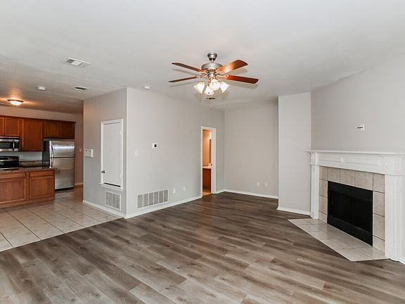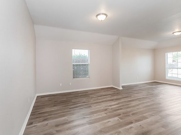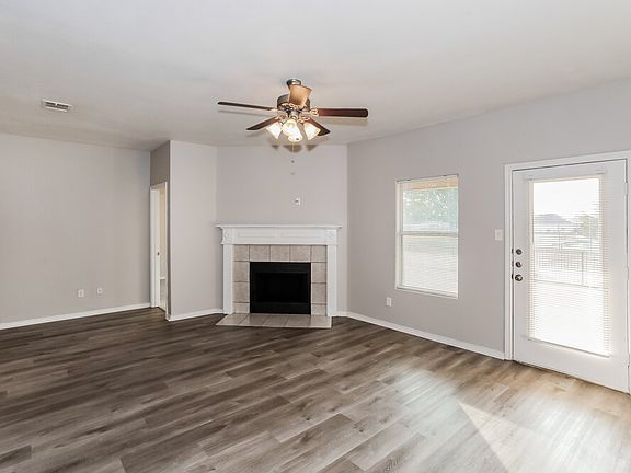 You'll find plenty to love about this Rhome, Texas rental home with three bedrooms and two bathrooms within 1,944 square feet of space. A fireplace with a tile surround adds charm to the living room, which has a glass door offering a view of the covered back patio outside. In the eat-in kitchen, you can use the stainless steel appliances and the center island while preparing your favorite meals. There's plenty of cabinet space as well as a large pantry. An elevated ceiling with a fan sets the mood in the carpeted main bedroom suite at the rear of the home. A walk-in closet and an en suite bathroom with a garden tub and a walk-in shower complete the suite. Apply to tour this pet-friendly Rhome property soon!