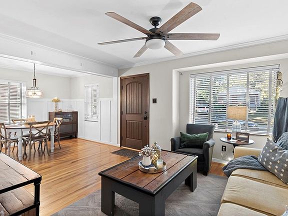 Welcome home to 1242 Charlane Court ... charming 2 bed, 1 bath bungalow in a fantastic Rock Hill location with walkability to parks, shopping, and restaurants. So cute from the curb! Enter from the covered front porch to the living room (with box bay window) and dining room (with board and batten walls) that span the front of the home, both with hardwood floors and crown molding. The light, bright kitchen has white cabinets, stainless appliances, a beverage center, and a French door that leads to a landing with a door to the backyard or the partially finished lower level. The 2 beds and full bath complete the main level. Downstairs is a large rec room with decorative, electric fireplace that adds ambient warmth to this cozy space that's great for overflow entertaining or hanging out with friends and family. There's another finished room with custom organizers that could be a giant walk-in closet, your get ready room, or the perfect storage for your off-season wardrobe. The lower level also houses the laundry and offers lots of storage space. The level, fenced back yard has a big patio and a shed with plenty of room left for gardening or playing. Don't miss this one!