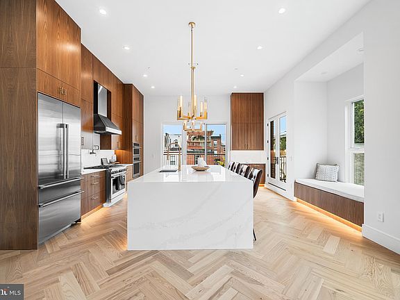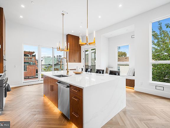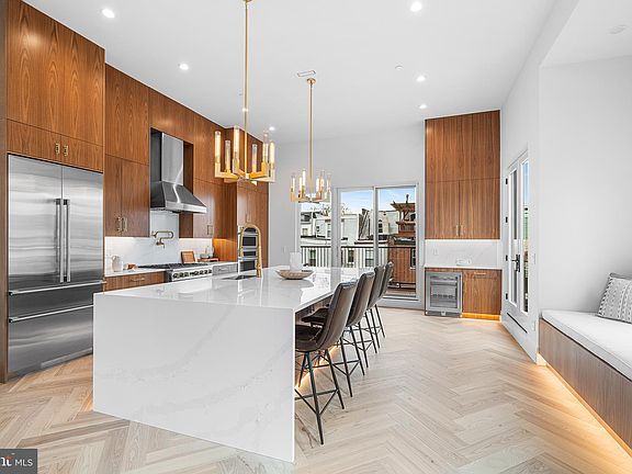 Welcome to the Corner Unit at the Oxford Commons,1242 E Oxford Street. A brand New Construction home with 2 Car Parking and multiple Outdoor Spaces in the heart and center of Fishtown just steps away from La Colombe in Fishtown and booming Frankford Avenue. Originally built as the Developers’s Unit, this home is loaded with upgrades, surrounded by oversized windows, located on a quiet side street and offers a Tax Abatement! This beauty is 5 Beds, 4 Baths, roughly 4,500/SF and an expansive 21 feet wide, a rarity for city living. The 1st floor consists of your 2 Car, side by side, Garage that is large enough for extra storage and equipped with a 220 volt line for your Electric Vehicle charger. Walk into the house and find a mud room, complete with storage and a washer & dryer. A bedroom and a full bathroom are also located on this floor that boasts 10 foot ceilings. Head up the stairs and you will find a huge custom, gourmet kitchen with walnut flat panel modern cabinetry that go from the floor up to the 12 foot ceilings and sit on gorgeous, solid herringbone hardwood flooring  The kitchen boasts luxury Monogram Appliances and a large island with stone countertops and plenty of seating. A custom built banquet with storage sits just across the island in case you wanted to add a table to turn it into a nook. Just off the kitchen is an enormous dining & living space with patio sliding doors (to the rear of the kitchen) not only shedding tons of light in, but providing access to your rear deck. The living room is centered around an open-sided, modern gas fireplace. Head up the custom steel stringer, oak tread staircase up onto the 3rd Floor where you will find 11 foot ceilings, a guest bedroom, complete with it’s own modern bathroom, an additional laundry room, and the luxurious Primary Suite. Step inside the Primary and you will find 2 walk-in closets, a grand bedroom drenched in sunlight, and a swanky bathroom. The bathroom boasts a 9 foot double vanity, private toilet closet and a huge walk-in shower with custom cut marble slabs, dual shower heads, dual rain head, wands and a jacuzzi soaking tub to give you a true spa-like experience. Above the 3rd floor is one of the largest roof decks in Philadelphia with unobstructed views of the city. Downstairs is a fully finished basement with 2 bedrooms, a full bathroom, and a media room/office/ playroom/whatever your imagination desires. 1242 E Oxford St is located just steps away from Fishtown’s best amenities, including; Middle Child Clubhouse, WM Mulherin’s & Son, Kalaya, Suraya, Bastia & so much more.