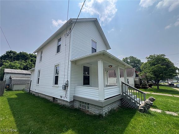 Charming Fully Renovated Colonial with Extra Lot in Canton! This beautifully updated 2-bedroom, 1-bath home offers modern comforts, stylish finishes, and unbeatable curb appeal. Nestled on two parcels, enjoy the convenience of a private concrete driveway—no on-street parking needed! Step onto the welcoming front porch and into a bright interior featuring luxury vinyl plank flooring, a cozy living room with a ceiling fan, and a gorgeous kitchen with subway tile backsplash and contemporary countertops. The spacious first-floor full bath shines with modern fixtures, and the laundry is conveniently located on the main level. A standout feature is the unique stained glass window panel at the stairwell, adding character and charm to this beautiful home. Large closets, vinyl windows with new blinds, and new lighting throughout complete the picture. Step out onto the private back deck for relaxing or entertaining. The basement is fully waterproofed (with transferrable warranty), includes glass block windows, and offers added storage space. Major updates in the last 4–5 years include: roof, gutters, siding, windows, furnace, hot water tank, electrical panel, flooring, front door, and more! Also includes two portable AC units and a handy 12x8 shed. Just move in and enjoy this worry-free gem in a great location!