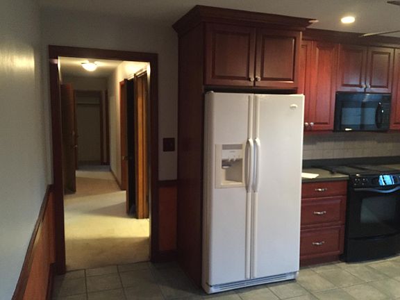 Three bedroom lower duplex. Large remodeled eat in kitchen with cherry cabinets, corian counters, ceramic tile, ceiling fan, new stove and microwave, large refridgerator, new dishwasher, and garbage disposal. Remodeled bathroom with cherry cabinet, vanity and ceramic tile. Wood burning fireplac. Central air conditioning. Lots of closets and storage space. Private rec room in basement. Clothes washer and dryer included. Large deck. Large private backyard. One garage space and additional parking in driveway.