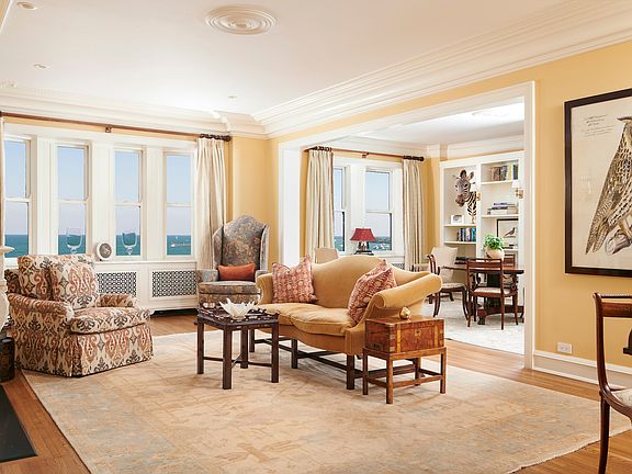 Welcome and move right in to this 3000 sq. ft. luxury co-op in one of Chicago's most prestigious buildings on Lake Shore Drive. The home features a blend of sophisticated renovations to complement the vintage details that make this a unique and comfortable home. Enter through a gracious entry foyer into the large living and dining rooms offering expansive views over Lake Michigan. The living room has a large working fireplace with marble mantle. The dining room has a long wall of custom bookcases for an artful display of books and art. A large butler's pantry/bar leads into the sunny breakfast room adjacent to the chef's kitchen that features top of the line appliances including a 6 burner Viking range and Subzero refrigeration (including a full refrigerator, multiple refrigerator drawers and a wine cooler) - perfect for entertaining. An enclosed laundry space with soaking sink is nearby. A long bright gallery with a built-in office and bookcases separates the three bedrooms with ensuite baths from the rest of the house. A perfect space for a display of art. The Master bedroom features a view of the lake as well as west facing windows. It has a large walk-in closet with custom built-ins and a spacious master bath with steam shower. The middle bedroom features custom mahogany paneling, and the third bedroom includes an 18-foot wall of custom cabinetry. The apartment boasts a custom sound system that features 17 speakers installed throughout 9 rooms, marble windowsills throughout for easy maintenance, hardwood floors, heated floors in all four bathrooms and generous closet space. The building, completed in 1929 with 29 stories and 35 residences, was designed by renowned Chicagoborn architect Robert Seeley De Golyer and was listed on the National Register of Historic Places in 1978. The convenient side drive thru is especially charming and useful for pick-ups and drop-offs. Rental parking is available next door at 1212 LSD. Building services include an attentive door staff, engineer, and on-site manager. There is no weight limit for one dog.