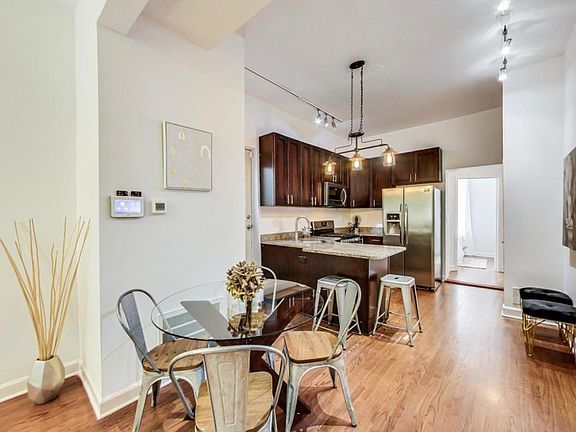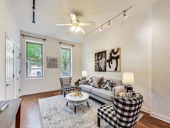 Gorgeous Wicker Park 2 bed/2 bath condo in a completely remodeled and updated 3 unit building on a quiet residential street. Just steps from the great shops and restaurants on Division Street and Milwaukee. Six minute walk to the Division/Ashland Blue Line stop. Beautifully updated brick building. The condo has hardwood floors throughout, an updated kitchen with dark cabinets, stainless steel appliances and granite counters. Updated bathrooms and Elfa closet systems in each bedroom. One bedroom fits a queen sized bed and the other bedroom fits a full sized bed. Central A/C and heat as well as in-unit laundry. Outdoor balcony perfect for grilling. Onsite exterior parking.
