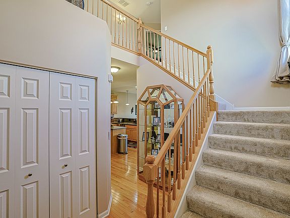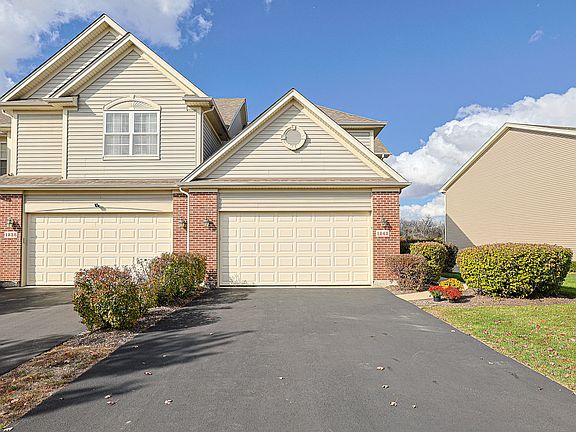 Welcome home to this stunning Plote-built end-unit townhome perfectly positioned on the stocked lake with peaceful water views and a walking path that loops the entire shoreline. Enjoy low-maintenance living with resort-like surroundings - including a neighborhood playground and direct access to The Hollows Conservation Area. Step inside to a dramatic 2-story foyer with hardwood floors and a coat closet. The open-concept main level is perfect for everyday living and entertaining- featuring a spacious living room with gas fireplace (updated 2024), dining area and beautifully updated kitchen. The kitchen shines with brand-new stainless steel appliances (2025), glass tile backsplash, island with breakfast bar, new farmhouse sink with hands-free faucet, pull-out drawers, under-cabinet lighting and trimmed cabinetry. Convenient laundry room with storage and middle tower that stays, plus extra-deep garage! Freshly painted with new carpeting throughout, screw-less light switches and ceiling fans add a modern touch. Upstairs you'll find a decorative wainscoted hallway, huge loft (easy option for a 3rd bedroom), guest bedroom with full bath, plus a private primary suite featuring dual closets and a spa-like bath with jetted tub, separate shower, dual sink raised vanity & heated exhaust fan above the shower. The full walkout basement offers incredible potential - roughed-in plumbing a bath & bar sink and patio access to enjoy the lakefront setting. Major updates for peace of mind: HVAC System (2024), Aprilaire Humidifier (2024), water heater (2021), fireplace gas logs, lava rocks & firebox (2024), Driveway (2022), Deck power-washed and stained (2025), screens repaired (2025) & more! A rare lakefront opportunity - welcome to serenity, convenience, and beautifully updated living in West Lake!