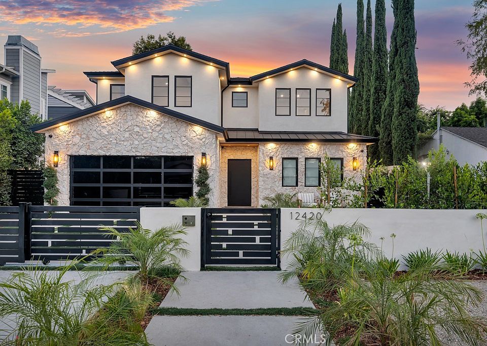 Luxurious and breathtaking New Construction estate offering 4,972 sf of meticulously crafted interiors on an 8,427 sf lot in coveted Studio City. With a striking timeless modern farmhouse architecture, and a gated entry, this residence embodies sophistication, elegance and comfort in perfect harmony. Step inside to soaring ceilings, expansive windows and wide-plank hardwood floors that bathe the home in natural light while highlighting its exquisite design details. The gourmet chef’s kitchen is a masterpiece, featuring custom cabinetry, a massive center island and top-of-the-line professional appliances. The seamless flow into the expansive dining and living areas creates the ultimate setting for both intimate gatherings and grand entertaining. Designed with versatility and modern lifestyles in mind, the home boasts a private executive office and a state-of-the-art home theater, providing both productivity and leisure at your fingertips. A fully integrated smart home system controls lighting, climate, and security, delivering effortless convenience and peace of mind. The upper level showcases four generously appointed bedrooms, each exuding comfort and style. The luxurious primary suite is a serene sanctuary with a spa-inspired bath featuring a freestanding soaking tub, glass-enclosed rainfall shower, dual vanities and an expansive custom walk-in closet. Outdoors, discover a private resort-style oasis. A sparkling pool and rejuvenating spa are framed by lush landscaping, while a covered patio and built-in BBQ kitchen provide the perfect stage for year round entertaining. Adding further flexibility and value, a detached ADU offers endless possibilities for guest accommodations, extended family or a private studio retreat. Perfectly positioned on a picturesque tree-lined street, and just moments from Ventura Boulevard’s premier dining, shopping and entertainment, this residence delivers a seamless blend of luxury, lifestyle and location.