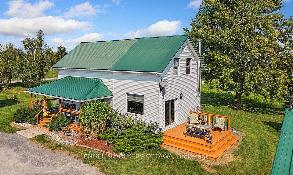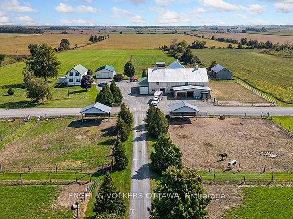 Discover the perfect blend of rustic charm and modern convenience with this 2-bedroom, 2-bath farmhouse set on 34+ acres. Currently generating over $8,000 in gross revenue each month with options for much more, this property offers both a warm family home and an outstanding agricultural opportunity. The open-concept layout features a cozy family room with a wood stove for chilly evenings, a bright dining room, and a stylish, well-equipped kitchen with brand-new appliances throughout. A dedicated home office provides a quiet, productive space in a serene rural setting.A true horse lovers dream, the property includes a 26-stall barn, tack room, and wash stall, along with multiple paddocks with electric fencing, a riding ring, and a -mile training track. Additional highlights include two decks with breathtaking views, a detached shop with lift for storage or projects, and acres of hay fields with room for cash crops, ensuring agricultural versatility and income potential. Conveniently located just 20 minutes from Rideau Carleton Raceway, this rare offering balances rural tranquility with easy access to city amenities. More than just a home, this is a lifestyle. New Heat pump installed November 2023.