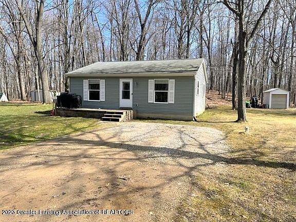 Great, almost new cozy home semi secluded in trees & super quiet area on 3/4 acre lot. Sellers have added lots of updates just since 2019. Appliances, flooring, repainted, more Kitchen cabinets, counter & Island tops, Bath flooring, paint & vanity,some room doors switched to slider style. First floor laundry area. Clean concrete crawl space 4 ft tall with water softener & sump pump. 200 amp service,& central air. Great room feel with Living Room, Dining area & Kitchen all open. New flooring throughout & Paint. Cleared up yard area & reseeded and cleared some trees. Still lots of trees for shade, summer breezes & wildlife to enjoy! Nice size 2 bedroom home & room to build a garage. 2 utility sheds. Bath schools, Dewitt address & 5 minutes from Dewitt Meijer & highways for easy commute.