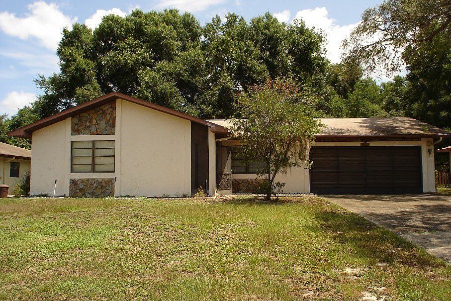 Great home with popular open floor plan and two car garage with lots of storage space. Family room plus living room with cathedral ceiling. Spacious kitchen with large snack bar open to family room. Enclosed lanai with vinyl windows plus outside patio. Newer A/C and sprinkler system on well. Fenced backyard. Close to Suncoast Parkway.