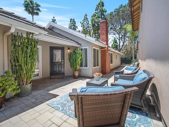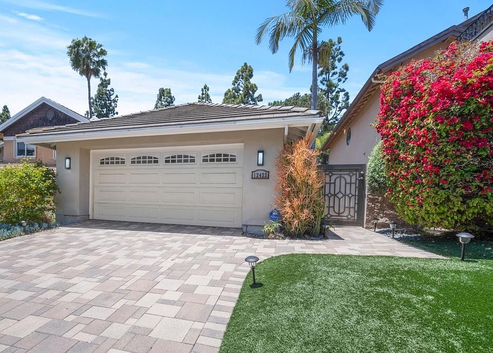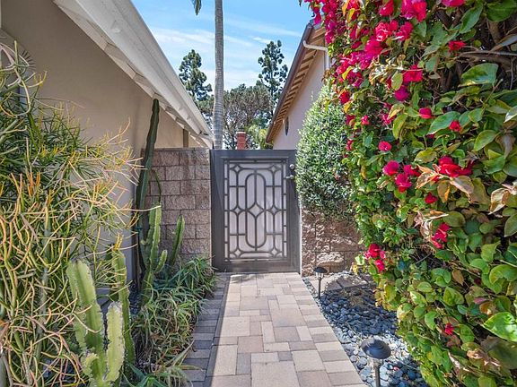 GORGEOUS, SINGLE STORY HOME IN CARMEL VALLEY! This updated, detached 2 bedroom, 2 full bath home is a must see! Enter the front, iron gate into a private courtyard/patio featuring custom pavers, landscaping and lighting with plenty of space for entertaining, indoor/outdoor living and al fresco dining. Step through the front door into the open, light and airy living room with vaulted ceiling, skylights, generous windows and cozy gas fireplace. Custom, updated open kitchen with white cabinets, granite countertops, breakfast bar and nook area with a sliding glass door to the outdoor patio with trellis. The spacious primary suite has a large closet, remodeled bath with step-in shower and a sliding glass door also giving access outside. The second bedroom comes complete with custom built-in shelving, large closet, attached updated bathroom with step-in shower and a sliding glass door leading out to the courtyard. New AC, new luxury vinyl flooring, new paint, plantation shutters throughout and much more. 2 car garage with decorative paver driveway and laundry. Walk to top-rated schools, parks and upscale restaurants and shopping. Just a quick drive to the beach and easy freeway access to everywhere San Diego has to offer! No HOA or Mello Roos!