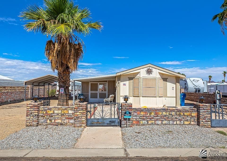 Welcome to this 2 bedroom, 2 bath single-wide with vaulted ceilings and a practical layout. The kitchen offers plenty of cabinet space, a breakfast bar, and opens to the living area for easy everyday use. A screened and tiled Arizona room extends the living space, ideal for relaxing or entertaining. Outside, you’ll find RV access and hook-ups along with a separate trailer currently used for storage. Set behind a fully gated lot with low-maintenance landscaping, this property is a great opportunity for year-round living or a seasonal retreat.