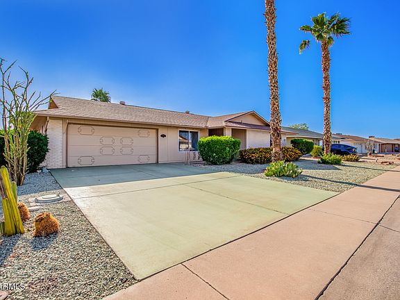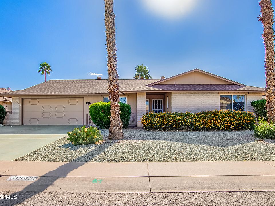 Start creating lasting memories in this charming 2-bedroom gem in Sun City! Inside, you'll find a spacious living room, a generous family room with a cozy fireplace, and a mix of tile and carpet in all the right places. The kitchen features built-in appliances, ample counter space, a walk-in pantry, and plenty of wood cabinetry. Get a good night's sleep in the main bedroom which offers a private bathroom for your comfort. Enjoy added storage with garage cabinets, and relax year-round in the screened-in patio with your favorite drink. Don't miss this inviting home. It's the one you've been waiting for!