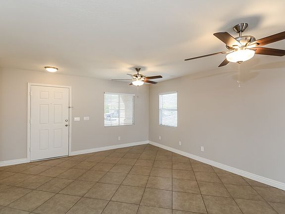 You'll enjoy chatting with friends or family on the covered patio in the fenced backyard of this four-bedroom rental home in El Mirage. In the living room, a tiled floor and ceiling fan provide a comfortable indoor gathering space, and a sliding glass door provides access to the patio. The first level's open floor plan continues into the dining room, which boasts a modern chandelier and several sunny windows. In the kitchen, there's an island with quartz countertops, which makes meal prep easy. Upstairs, the serene master bedroom provides a walk-in closet and a private bathroom with a tiled bathtub and shower. Nearby Bill Gentry Park will add to your options for outdoor fun. Apply for this home today.