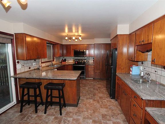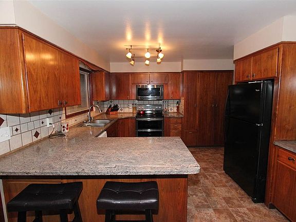 Room for everyone in this 6 bedroom, 3 bath, 4-level home. Enjoy the enormous kitchen with built-in spice cupboards, pantry, hide-away island, granite counter tops and cupboards galore. Complete with 2 family rooms, 3 fireplaces, and an indoor storage area that can't be beat. Outside enjoy raised garden beds, plum, cherry, and apple trees, a shed which can be used as a chicken coop, huge fenced yard, pull-through 2-car garage with a breeze-way to the house, and a view across the street. Priced to sell.