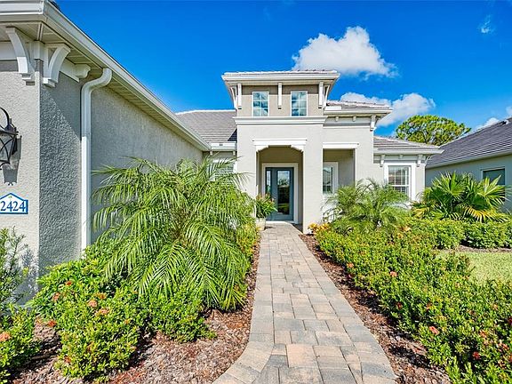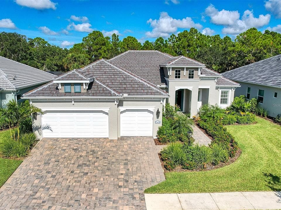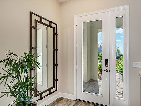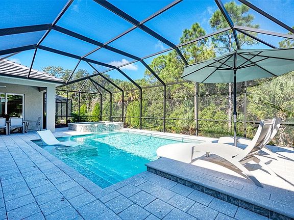 This is the house you have been waiting for in Grand Palm! Built in 2020, this nearly New Sanibel model offers a split floor plan with an open concept living area, impact windows and doors high ceilings, real wood plantation shutters and designer wood look tile floors throughout. Add to your culinary adventures with ease in your chef kitchen that includes upgraded GE Cafe Stainless Steel appliances; gas cooktop, built-in double oven with convection, double stacked custom cabinets and matching range hood that vents outside, elegant natural Quartzite Stone countertops, shiny gray Ceramic Backsplash and a Composite Sink. The walk-in pantry provides a place for all your kitchen essentials with real wood shelving. Steps away, enjoy your perfectly prepared meal in your oversized dining room open to the Great Room, over looking the lanai. Pocket sliding glass doors leads out to the covered, screened lanai with tv mounting bracket and gas stub out for easy outdoor grilling. This exquisite heated salt water pool with raised spa is certainly a WOW factor. Custom built and designed with water features and sun shelf surrounded by Shelllock Pavers. A full pool bath, with enclosed glass shower with tile to the ceiling, accessible from the lanai is steps away! The spacious master suite, situated towards the back of your home, giving you maximized peace and privacy. Double master closets, complete with custom closet organizers provide easy storage for all your warm weather clothing. The spa like master bath is adored with an over sized, full glass enclosed walk-in shower, a relaxing garden tub surrounded by accent tile, dual vanities and a private toilet room. Guest can enjoy their stay in one of two bedrooms located in the guest wing with the second bathroom between. Need a little more space? The french door, enclosed Club Room has many useful options with a sliding glass door leading out to the extended covered lanai. Make it your home office, a quiet sitting room or can double as an extra bedroom. You will want to write home about this custom built and designed laundry room! The LG front loading washer and gas dryer are built in with Quartzite countertop, a Composite sink and 42 upper cabinets. This Sanibel offers a 3 car garage with a 4 extension and full coverage epoxy flooring. Plenty of room to house your vehicles and golf cart with additional space for storage. Throughout the home you will find 8 interior doors and upgraded base boards. Take advantage of the resort style heated pools, participate in social gathering, pickle ball, tennis, bocce ball and a fitness center right in the community with no additional fees.Want to enjoy the Gulf beaches? Venice Beach is less than 20 minutes away! Come live the Florida dream. Schedule your showing today!