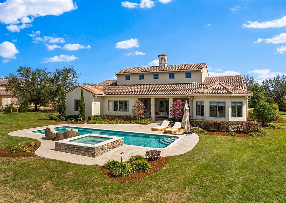 View the cinematic video and experience the ultimate in luxury living with this exquisite 5.34-acre Tuscan-style equestrian estate, nestled within a secure gated community surrounded by an expansive 8,000-acre state forest. This property offers a perfect escape, just 20 minutes from the renowned World Equestrian Center and 5 minutes from shopping, medical facilities, and dining options, conveniently situated between the Rainbow River and Ocala. This stunning 2016 move in ready furnished home provides a custom feel within the 4 bedrooms with en-suite bathrooms on the main level with an additional 5th versatile/media room on the second floor. The impressive living area is highlighted by a cathedral ceiling, a cozy gas fireplace, and an open custom-made kitchen, formal dining room, and pantry. Enjoy the western exposure sunset views overlooking the pool and pastures! The primary suite is generously sized, and the home boasts numerous closets, tray ceilings throughout, and elegant travertine finishes inside and out. With plaster walls, pre-cast trims, and over 3,800 square feet under air conditioning, this home seamlessly combines elegance and functionality. The property includes a breezeway leading to a spacious two-car garage with an upstairs room, all under air conditioning. This unique open floor plan amazing light and entertaining spaces. Enhancements to the property include a heated 41 ft x 14 ft pool and spa added in 2020, and a beautifully constructed 3-stall (14x14) center aisle concrete block barn with a tack room, full bath, and garage built in 2022. Equestrian enthusiasts will appreciate the two paddocks with automatic waterers, a 200 x 100 riding arena, and creosote board fencing. Enjoy direct access to miles of trails right from your backyard.