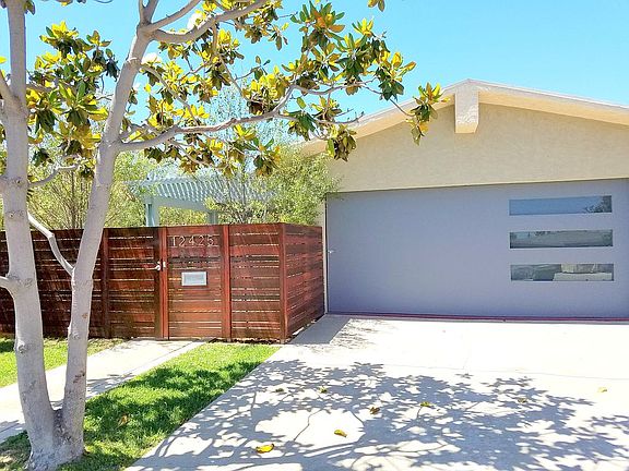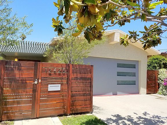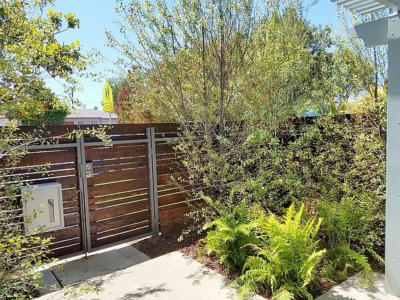 This is the coziest home, everyone loves it! Large airy vaulted ceiling great room at entrance, remodeled kitchen w stainless appliances, granite counters, farm sink, poured concrete floors, carpeted bedrooms. Completely remodeled baths with modern fixtures. So much light! Every window has a view of lush plantings. Level gated private backyard with two mature trees (one bears grapefruit) and tall hedges. Great for children or pets or barbecues! Private courtyard garden in front surrounded by custom handmade redwood fence, peaceful foliage inside. Graceful magnolia tree in front. Custom handmade birch veneer front door with three slit panes of frosted glass to match custom garage door. Lots of closet space, vintage wood accordion doors. House is cool even in summertime, heats well in winter, quiet location, friendly neighbors, many are original owners.
