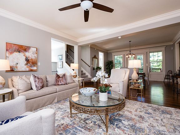 Wow! This beautifully maintained, spacious four bedroom home offers the unbeatable amenities of Woodlands Edge with the charm of Brodie Creek. Overlooking dedicated 2-acre greenspace, enjoy privacy and breathtaking tree-top views that make every day feel like a retreat. Floorplan is perfect for family living and entertaining with living and dining room, den w/fireplace off kitchen, walk-in pantry, serving bar, office and covered porch, all on main level. Upstairs are three spacious bedrooms, each with own bath, living area, and screened-in porch. Oversized primary suite includes two walk-in closets and walk-out attic storage. Downstairs has versatile 4th bedroom/game room has wet bar, ice maker, temperature controlled wine cellar, full bath, walks out to covered patio, ideal for guests or movie nights! Rare 3-car rear-entry garages with extra parking. Recent updates include new roof (2023), Bosch fridge, Whirlpool washer/dryer, newer hardwood floors, granite counters, lighting upgrades, water heater (2021), fresh interior/exterior paint (2021) and more. Neighborhood has pool, pickleball, tennis, 7 miles of trails. This is a must-see! Assumable 3% VA Mortgage! Agents see remarks