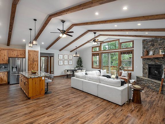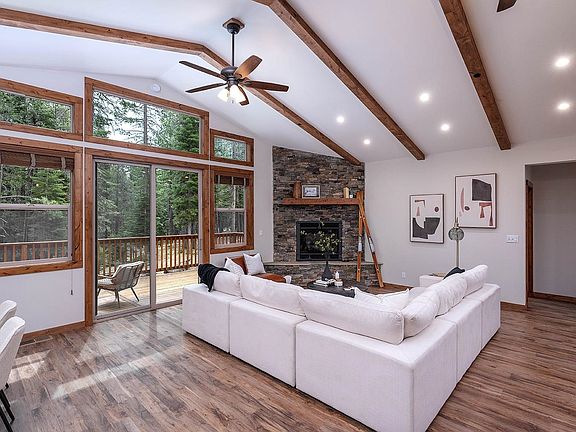 Discover the perfect home in a prime location! This stunning single-story modern mountain home, crafted by Eichele Construction, offers unmatched privacy and direct access to National Forest lands and Prosser Reservoir. The home features a thoughtfully designed open layout and includes two bedrooms, an office, a spacious airlock entry, a laundry room, and a two-car garage. Inside you'll find a warm and inviting atmosphere, complete with alder cabinetry, trim and doors, stone countertops and a floor-to-ceiling stone hearth with a Fireplace Xtrordinair. Large windows and a sliding glass door frame the wooded rear setting and provide access to spacious decking perfect for relaxation or entertaining. This home seamlessly combines tranquility with convenience and includes a generator for added peace of mind. Located just minutes from downtown Truckee’s vibrant core and a variety of shopping and dining options. Enjoy an extensive network of trails right outside your door and nearby recreational opportunities including golf, biking, boating, hiking, skiing and so much more. Step out the back door and enjoy the outdoors!