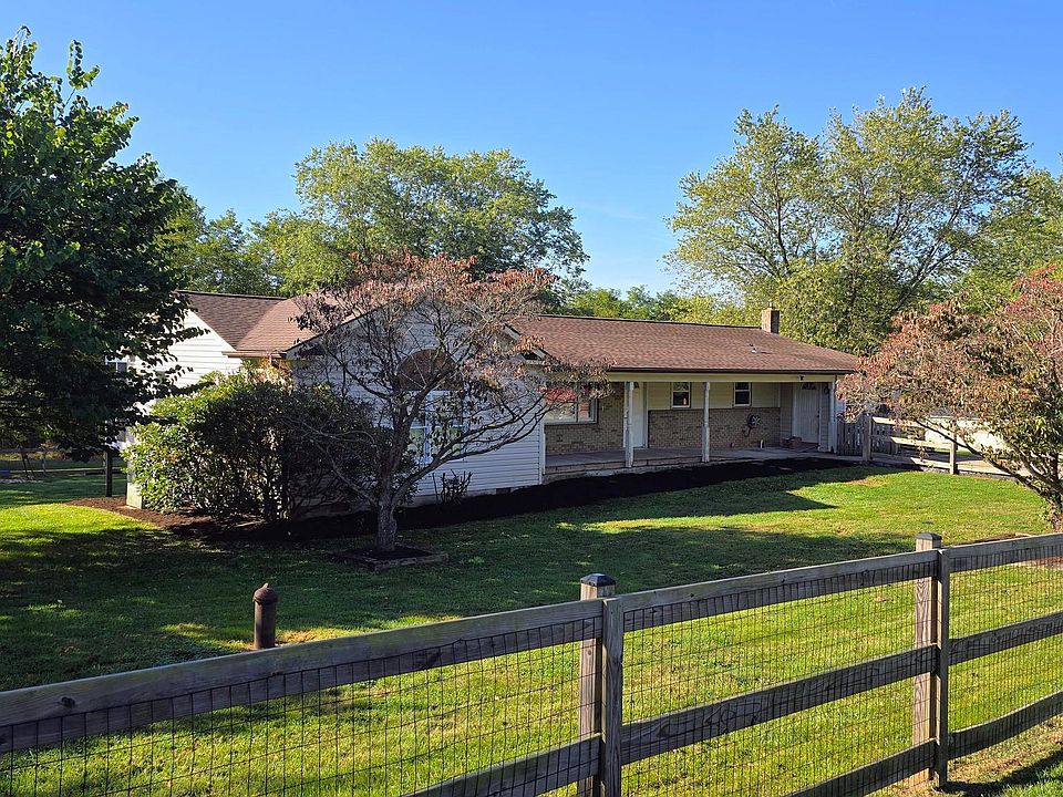 HANDICAP ACCESSIBLE! Welcome to WOLFSVILLE! Country living at it's finest. When you walk in the front door, you enter the "main living room"; to the left is the addition of the large vaulted ceiling master suite with closets and bathroom built for complete accessibility - roll in shower, lower sink/mirror, all tile floor, and also a standard tub/shower. On the other side of the house is a large laundry room with built in storage, 2 additional bedrooms, 1 full bath off the hallway, and then an amazing year round sunroom with a pellet stove for warming up in the cooler months. There is a screened porch in the back, fully fenced yard, childs playset conveys, and a shed for storage, all on OVER AN ACRE of land. Hardwood floors throughout (NO CARPET!) and tile in the kitchen. The kitchen is quite large with tons of cabinetry.