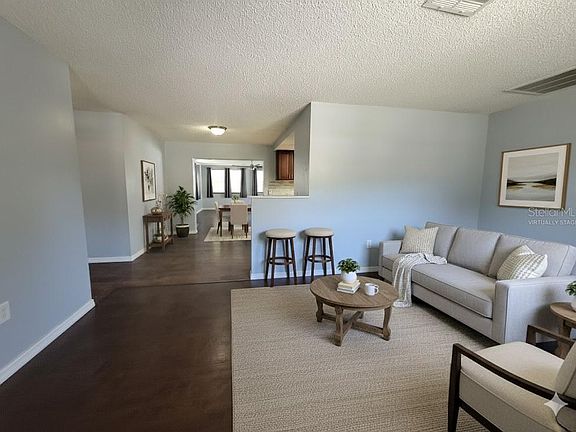One or more photo(s) has been virtually staged. Room to Relax, Space to Entertain & Just Minutes to the Gulf! Welcome to a home that captures the essence of easy Florida living all with NO FLOOD INSURANCE...AND...IT QUALIFIES FOR A 3.99% RATE FOR THE FIRST 7 YEARS!! From the moment you arrive, the classic white picket fence and peaceful front porch invite you to slow down — the perfect spot for morning coffee or an evening glass of wine after a long day. Step inside and be impressed by the GENEROUS SPACE this home offers! The bright FORMAL LIVING ROOM welcomes natural light and warmth at the front of the home, while the expansive GREAT ROOM in the back provides the perfect setting for gatherings, movie nights, or simply stretching out and relaxing. The UPDATED KITCHEN stands at the heart of it all — featuring warm wood cabinetry, STAINLESS STEEL APPLIANCES, and a BREAKFAST BAR that opens to the dining area. Whether you’re enjoying casual weekday meals or entertaining guests, this layout makes connection and conversation effortless. Your Primary Suite offers a calm retreat, complete with a WALK-IN CLOSET and a PRIVATE BATH, while the additional bedroom provides flexibility as the kids bedroom, a home office, gym area, or creative space. Each room is light-filled, inviting, and designed for everyday comfort. Step outside and discover even more to love — a spacious backyard with plenty of room to garden, play, or create your own outdoor oasis. The OVERSIZED, SCREENED-IN LANAI make it the perfect place to host summer BBQs, relax with friends, or unwind under the stars. Additional features include a LARGE 2 CAR GARAGE W/LAUNDRY AREA, ample storage, and a driveway with room for multiple vehicles. All this, just minutes from the Gulf beaches, local parks, and vibrant shopping and dining options! Whether you’re looking for a primary residence, seasonal retreat, or a place to slow down and savor the Florida lifestyle, this home delivers comfort, convenience, and charm at every turn. Come experience the space, the style, and the serenity — your next chapter begins here! The living space continues outdoors with a LARGE SCREENED-IN LANAI, a true Florida retreat where you can recharge in evening breezes and entertain family and friends year-round. The oversized primary bedroom feels like its own private escape, complete with a walk-in closet & ensuite bath featuring a step-in shower. The guest bedroom is generously sized & sits right beside a full bathroom with a tub/shower combination, offering comfort for family & visitors alike. Laminate flooring in the main living areas, tile in the baths & a ROOF REPLACED IN 2013 provide both style & peace of mind. No more trips to the laundromat now that your home has laundry located right inside the 2-car garage with extra storage space & a workbench! This home sits in a GREAT Pasco County location—Hudson Beach is just 15 mins away, Tampa International is less than a 45-minute drive, & enjoy a day of golf at Meadow Oaks Golf & Country Club with a less than 5-min drive! Located just minutes from shopping, dining & the Gulf Coast’s sandy beaches, this home delivers the space you crave & the lifestyle you deserve!