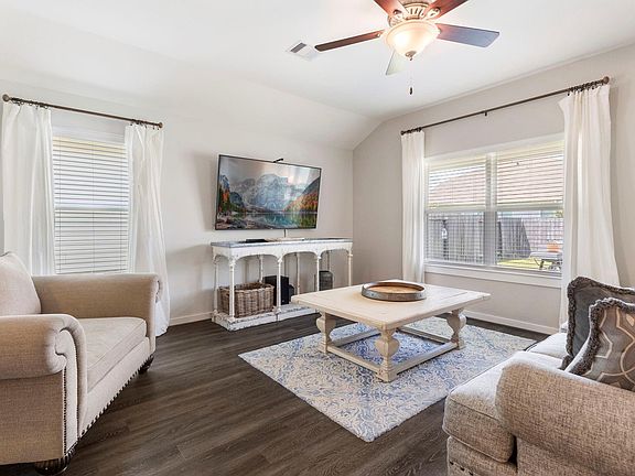 Welcome to this charming three-bedroom, two-bathroom home in the Mostyn Springs neighborhood, where original owner shines through every carefully maintained detail. This home features a spacious kitchen with granite countertops, forty-two inch cabinets offer abundant storage, stainless steel appliances, and the generous island with breakfast bar. The open-concept design seamlessly connects the kitchen to the family room and dining area. The primary ensuite serves as a peaceful retreat, featuring dual sinks for busy mornings, a relaxing shower, and a walk-in closet that provides ample space for your wardrobe. Two additional bedrooms offer comfortable accommodations for family members or guests, sharing a well-appointed bathroom. Outside, the covered patio and large backyard extends your living space outdoors, perfect for morning coffee or evening relaxation.