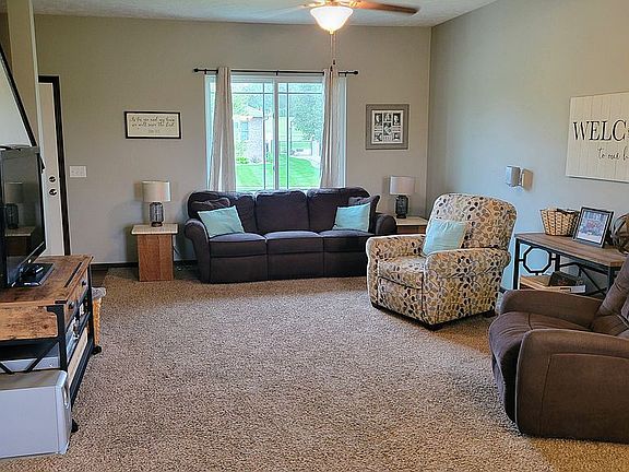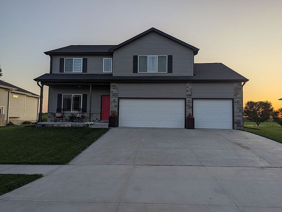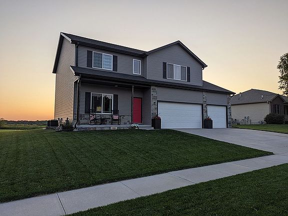 Location, Location LOCATION!!! This beautiful 2 story home is situated on a quiet cul-de-sac on the edge of town and gives acreage style living with all the in town conveniences. The extra large lot allows for space between neighbors and the farm land behind the house means you will never have rear neighbors. You will never get tired of the unobstructed sunset views & you can enjoy the shared field out back, complete with already prepared 20x25 garden & horseshoe pits. The rest is a literal field of dreams for your neighborhood baseball game, bonfires and sledding behind the 4 wheeler! You are just a mile from the fairgrounds and swimming pool, up the block is a new playground and walking path and let's not forget the golf course right across the street!